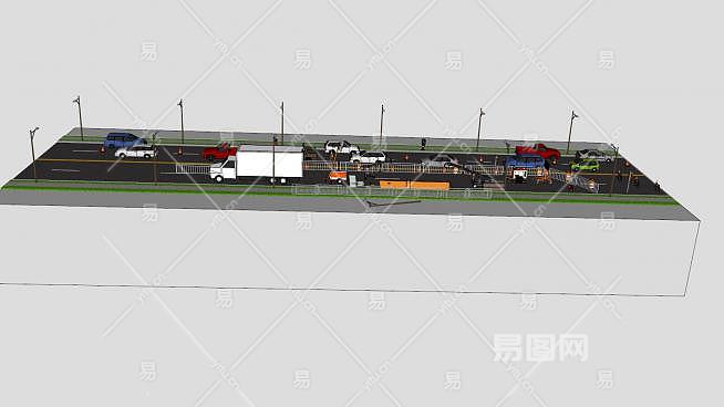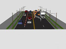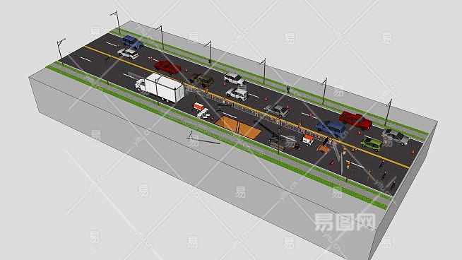 行驶车辆和施工道路SU模型下载_sketchup草图大师SKP模型