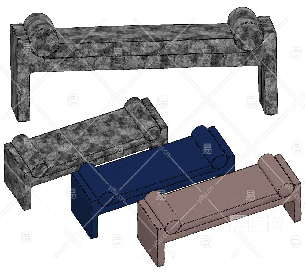 后现代床尾凳,沙发凳,脚踏,su草图模型下载