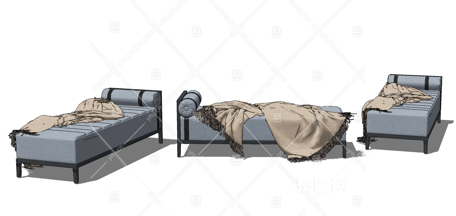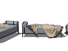 现代布艺床尾凳脚踏su草图模型下载