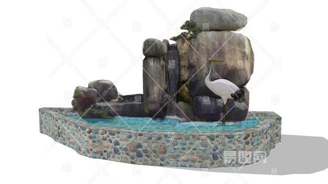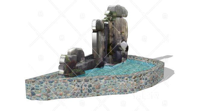 半圆形假山水景SU模型下载_sketchup草图大师SKP模型