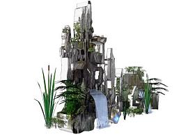 假山植物花草SU模型下载_sketchup草图大师SKP模型