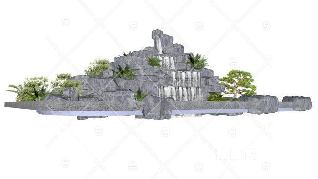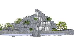 大型假山叠石流水景观SU模型下载_sketchup草图大师SKP模型