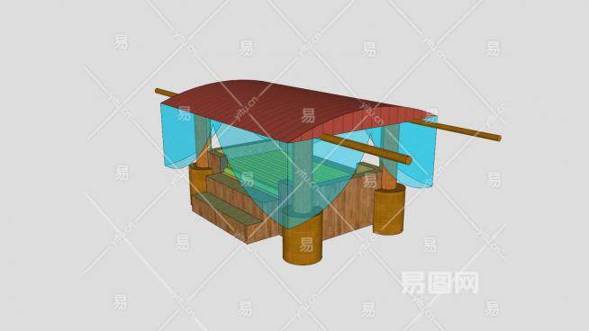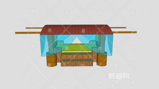 仿古覆盖式辇轿SU模型下载_sketchup草图大师SKP模型