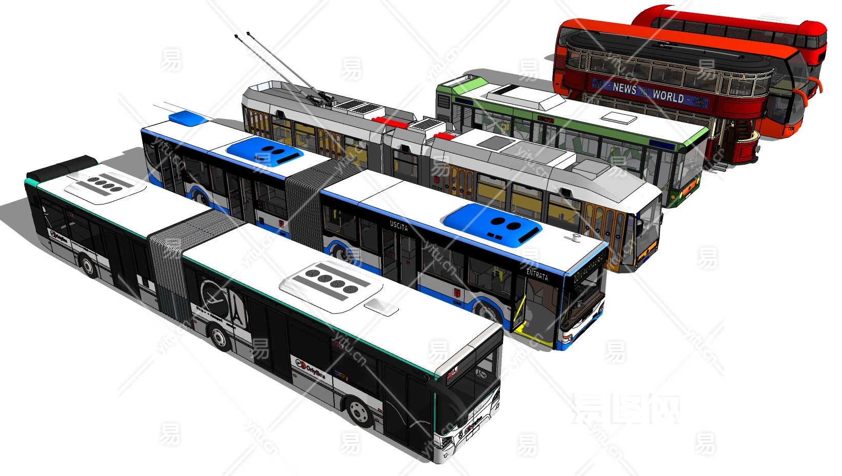 45公交汽车,班车 su草图模型下载