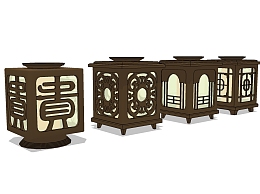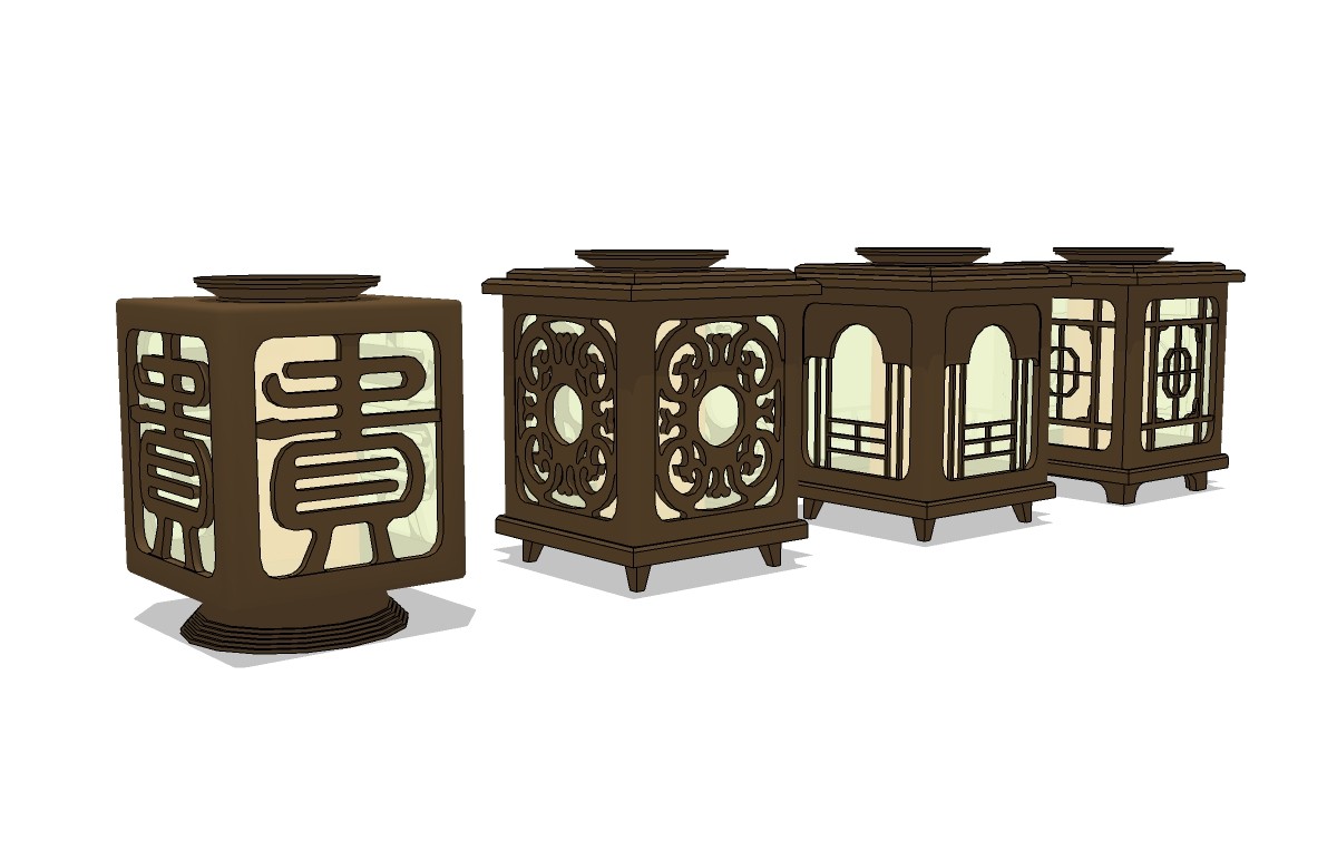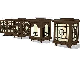 中式唐风地灯草图大师模型,唐风地灯sketchup模型下载