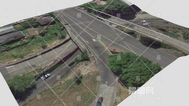 三分叉道路立交桥SU模型下载_sketchup草图大师SKP模型