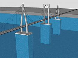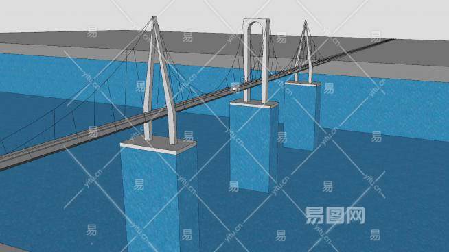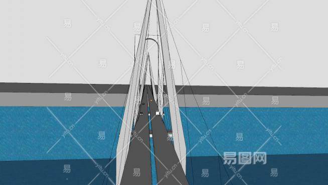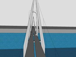 河道上的拉索桥SU模型下载_sketchup草图大师SKP模型