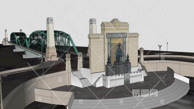 纪念大桥桥梁建筑SU模型下载_sketchup草图大师SKP模型