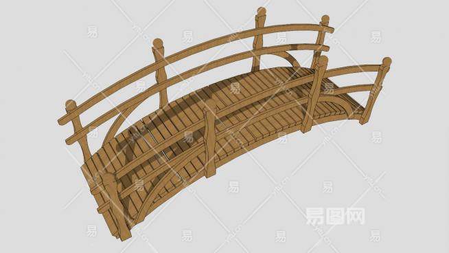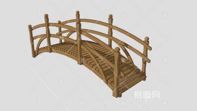 中式防腐景观桥小木桥SU模型下载_sketchup草图大师SKP模型