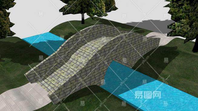 自然风砖砌拱桥SU模型下载_sketchup草图大师SKP模型