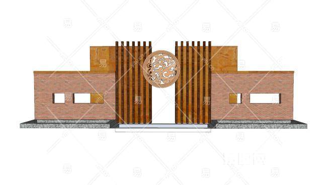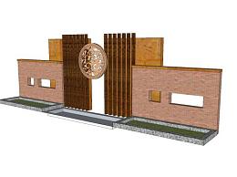 新中式围墙景观墙SU模型下载_sketchup草图大师SKP模型