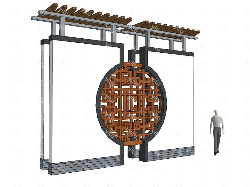 新中式景墙sketchup模型下载