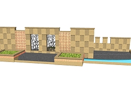 欧式景观墙SU模型下载,景观墙skb模型分享