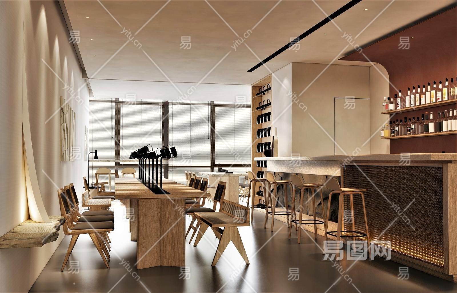 侘寂酒吧 餐桌椅 休闲椅餐椅 吧台 酒具酒瓶 吧凳