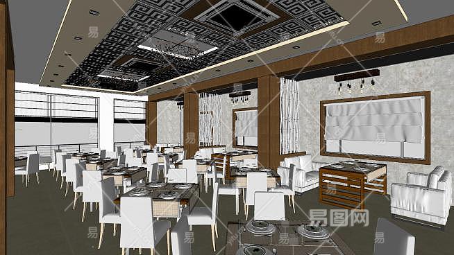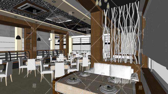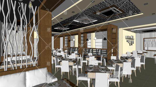 餐厅餐饮店室内空间SU模型下载_sketchup草图大师SKP模型