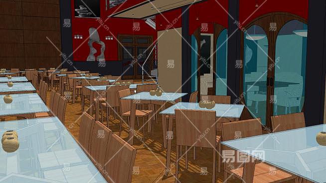 现代风格大型餐厅SU模型下载_sketchup草图大师SKP模型