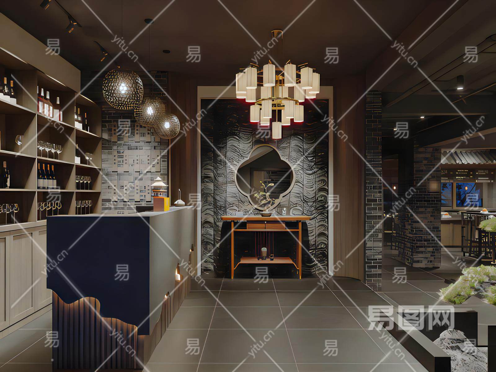 新中式酒店前台模型