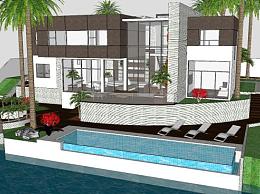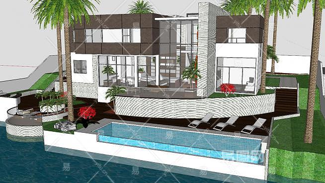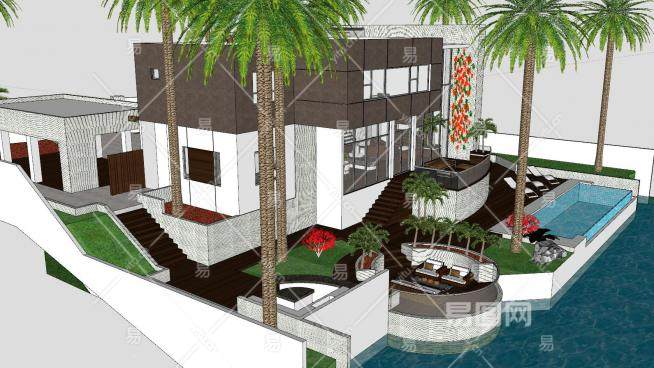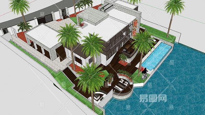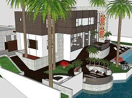 摩登豪宅度假酒店SU模型下载_sketchup草图大师SKP模型