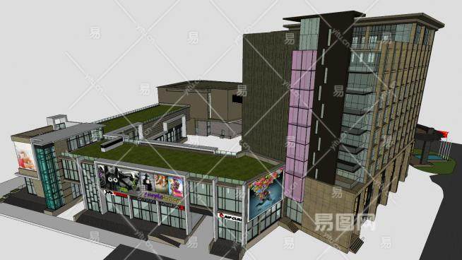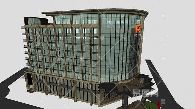 现代风酒店商业综合体建筑SU模型下载_sketchup草图大师SKP模型