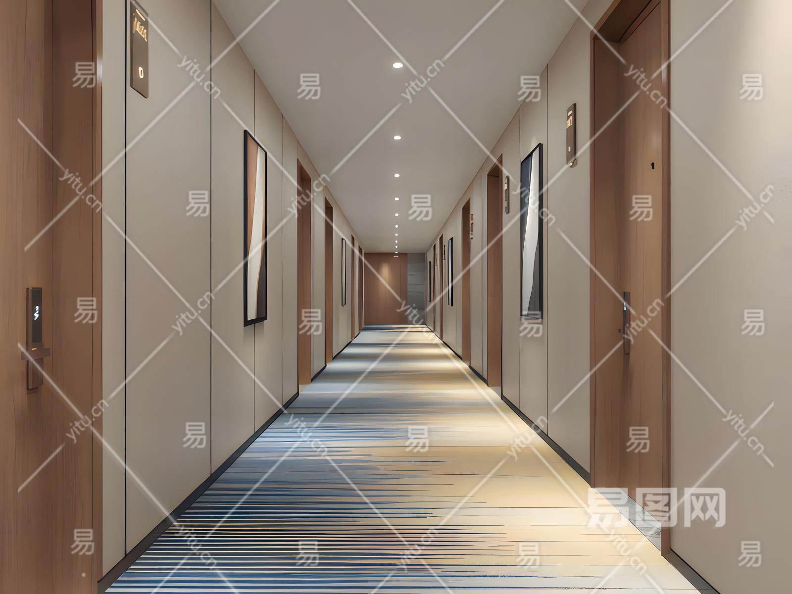 现代酒店客房走廊模型