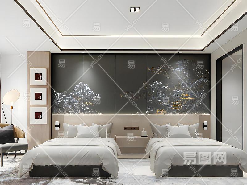 新中式酒店房间模型