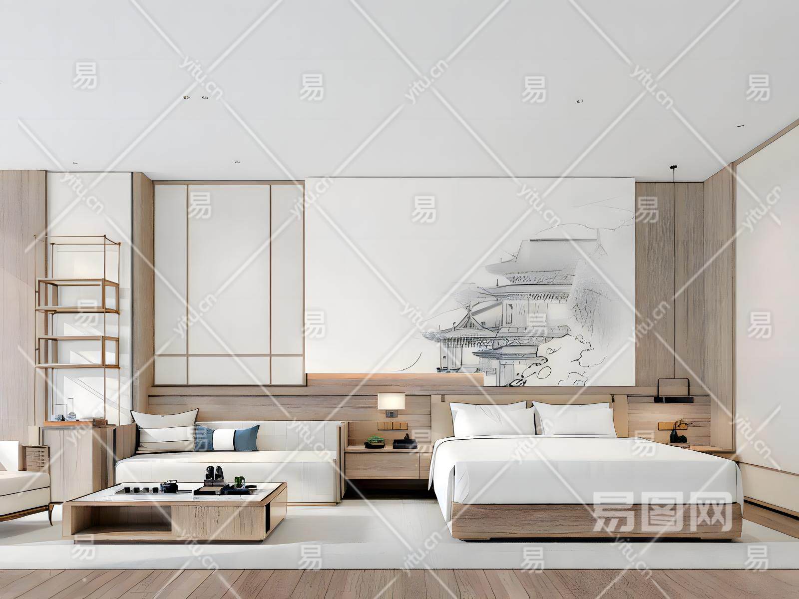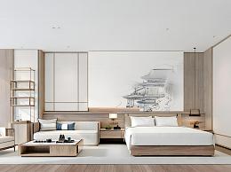 新中式酒店客房模型