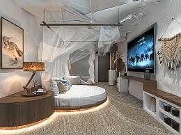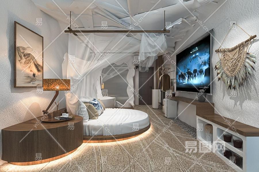 中式民宿客房 酒店客房 自然风民宿 客栈 斜顶 宾馆客房