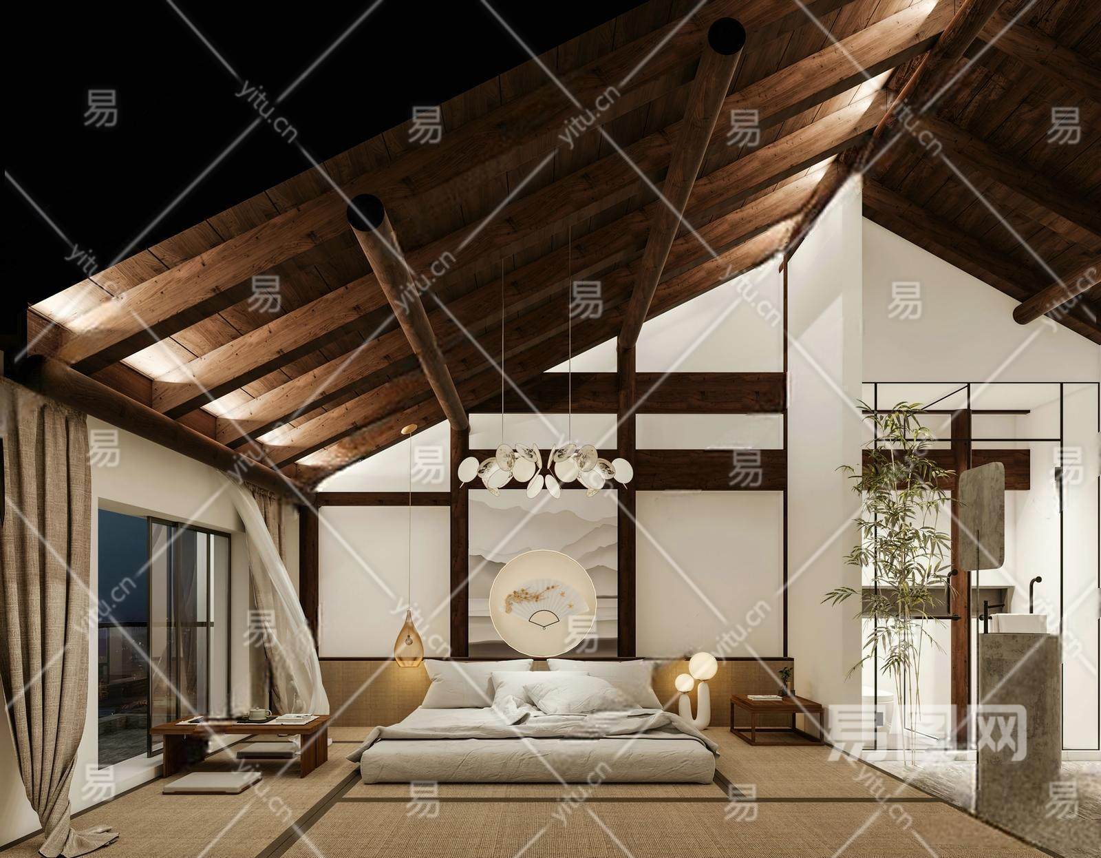 当前的位置:首页 > sketchup > sketchup模型 > 酒店空间 > 酒店客房 > 新中式民宿内部 双人床 床头柜 吊灯 床头背景墙 衣柜 椅子