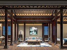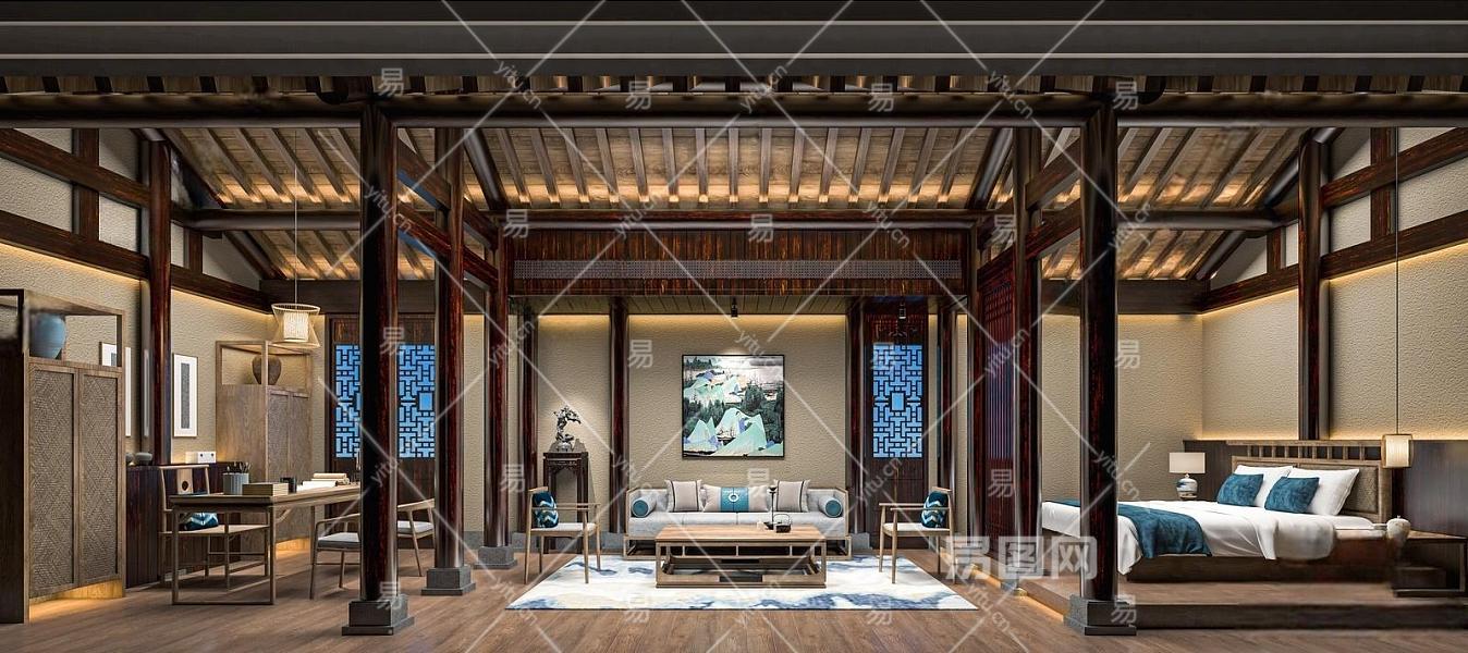 新中式民宿套房 民宿客栈 会客厅 茶室 斜顶