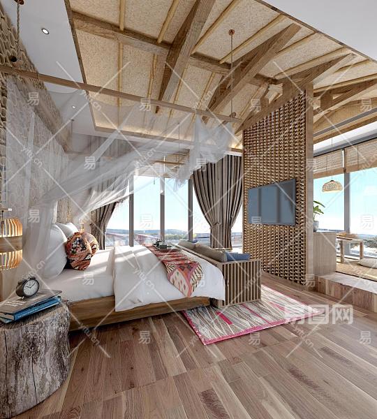 当前的位置:首页 > sketchup > sketchup模型 > 酒店空间 > 酒店客房 > 新中式民宿客房 酒店客房 卧室 藤编隔断 竹编吊灯
