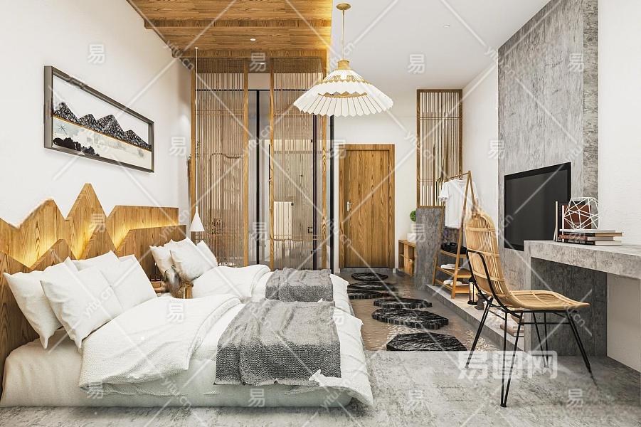 新中式民宿客房 酒店客房 民宿单间标间 客栈 大床房