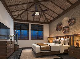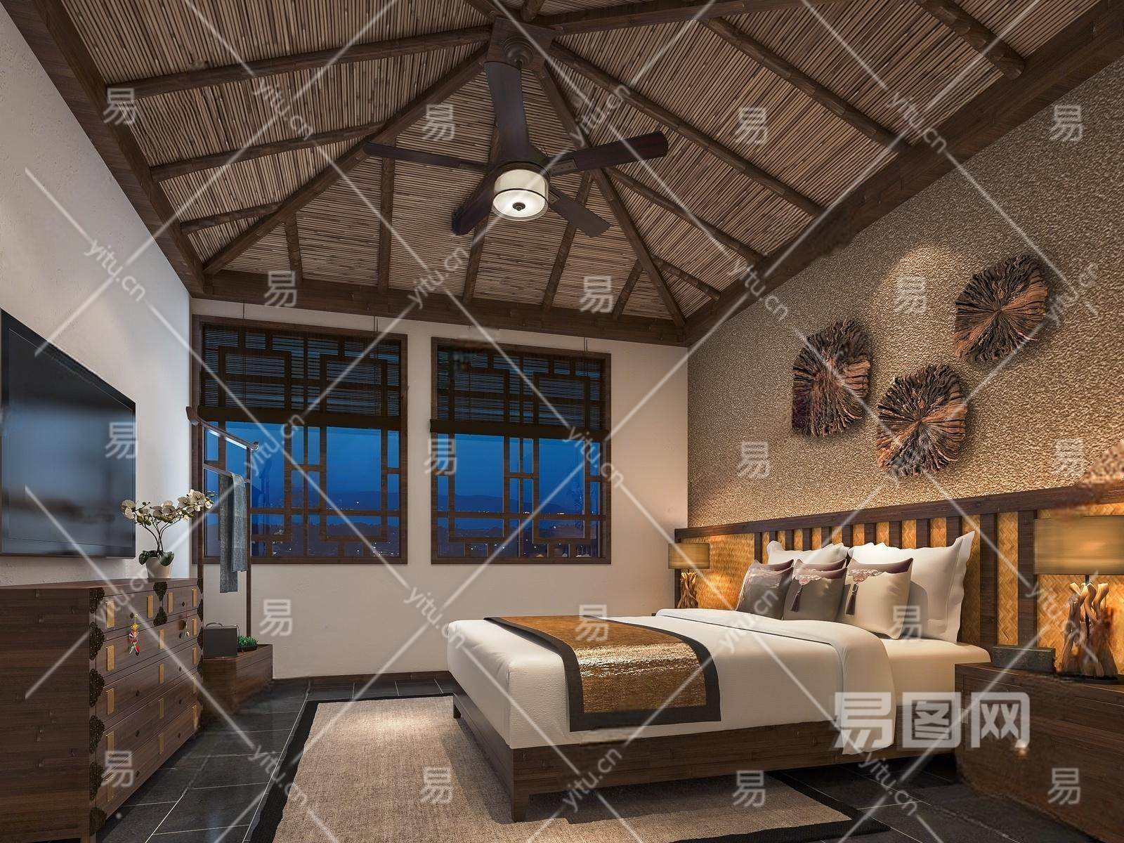 新中式民宿客房 酒店客房 民宿单间标间 客栈 大床房斜顶