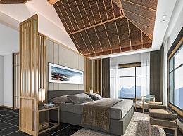 新中式民宿客房 酒店客房 民宿单间标间 客栈 大床房斜顶
