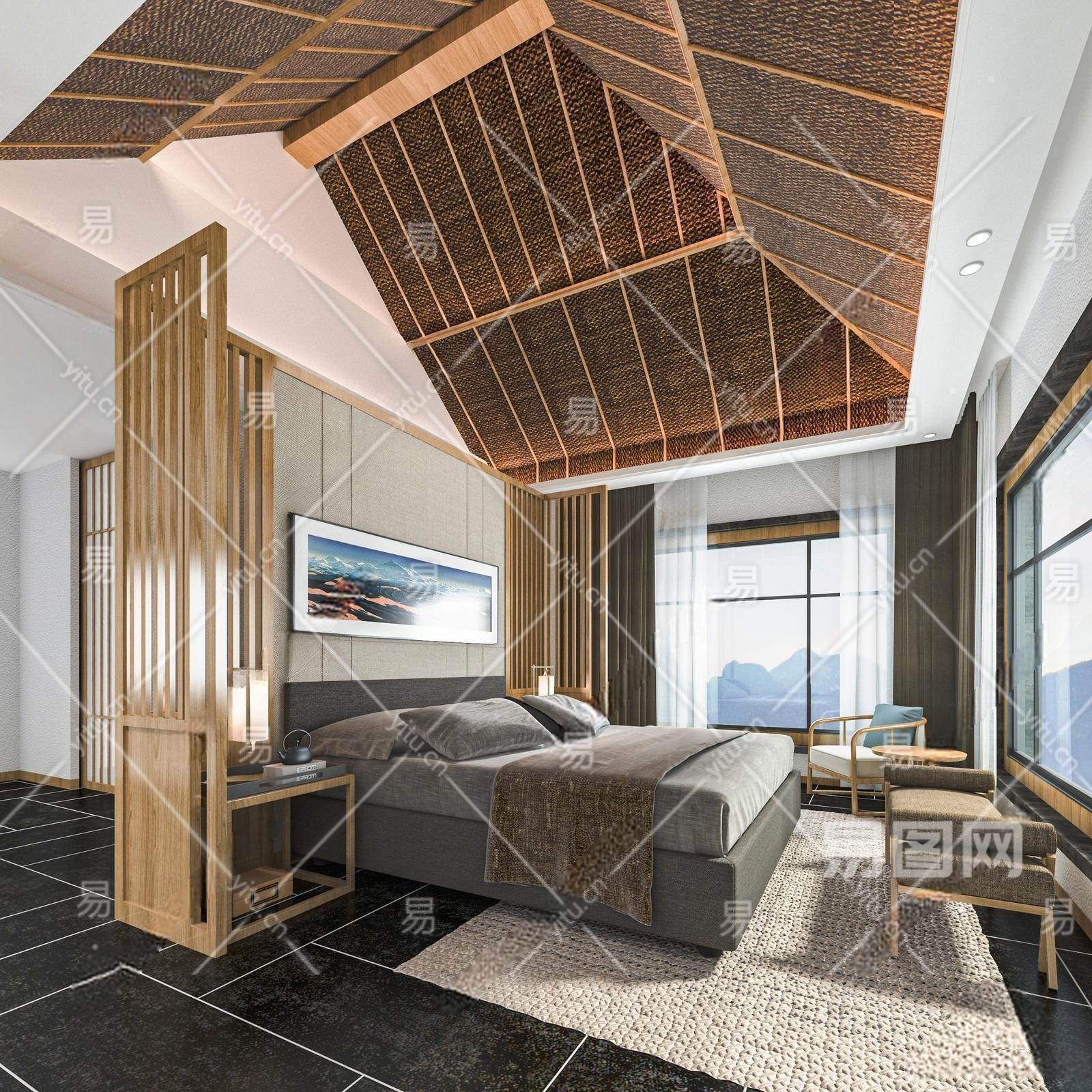 当前的位置:首页 > sketchup > sketchup模型 > 酒店空间 > 酒店客房 > 新中式民宿客房 酒店客房 民宿单间标间 客栈 大床房斜顶