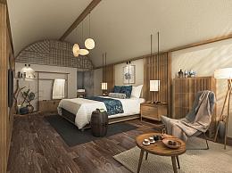 新中式民宿客房 酒店客房 民宿卧室 客栈 酒店套房 休闲椅