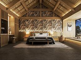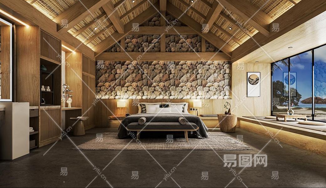 新中式民宿客房 酒店客房 自然风民宿 客栈 斜顶 宾馆客房