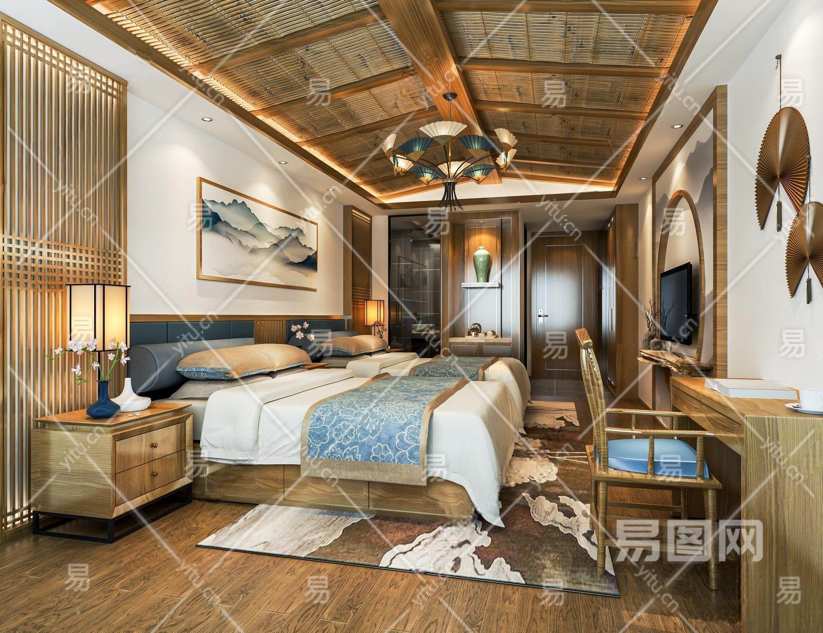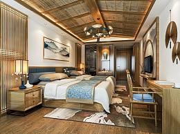 新中式民宿客房 酒店客房 自然风民宿 客栈 酒店套房