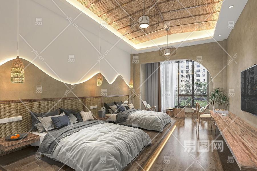 新中式民宿客房 酒店客房 自然风民宿 客栈 酒店套房