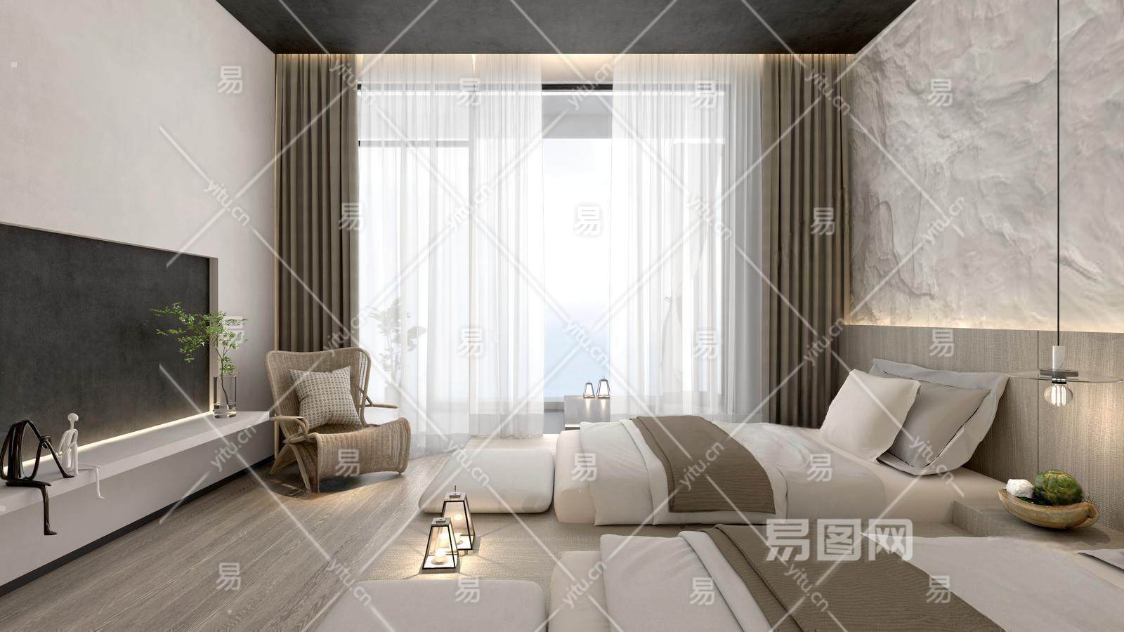 现代民宿客房 酒店客房 民宿标间 双人房卧室
