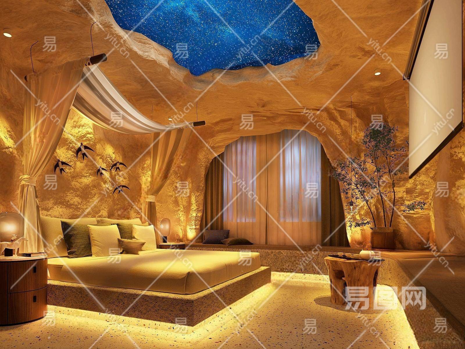 现代溶洞网红民宿客房 卧室
