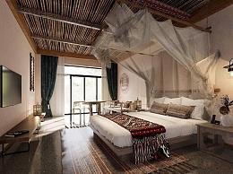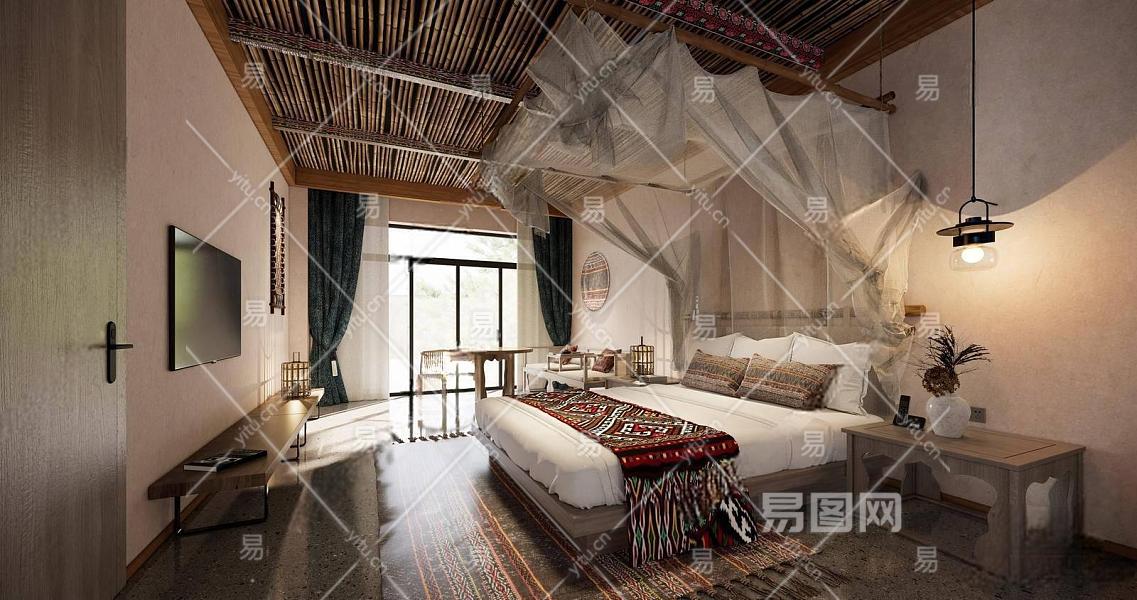 东南亚民宿客房 酒店客房大床房 网红酒店客房 特色客房 迷你吧
