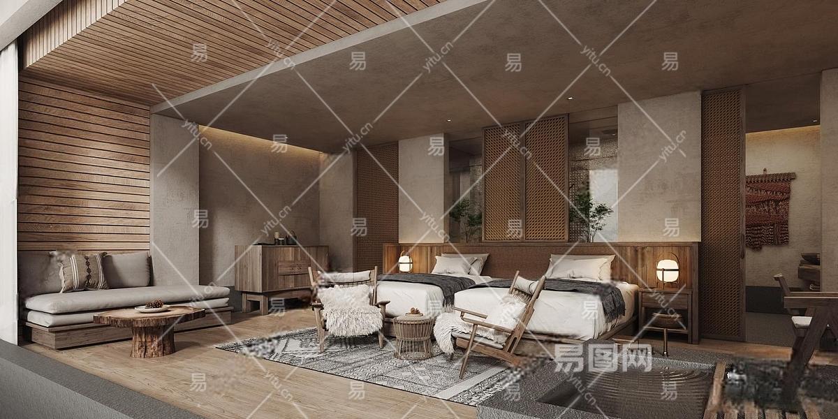 当前的位置:首页 > sketchup > sketchup模型 > 酒店空间 > 酒店客房 > 侘寂民宿双人房 沙发 休闲椅组合 背景墙