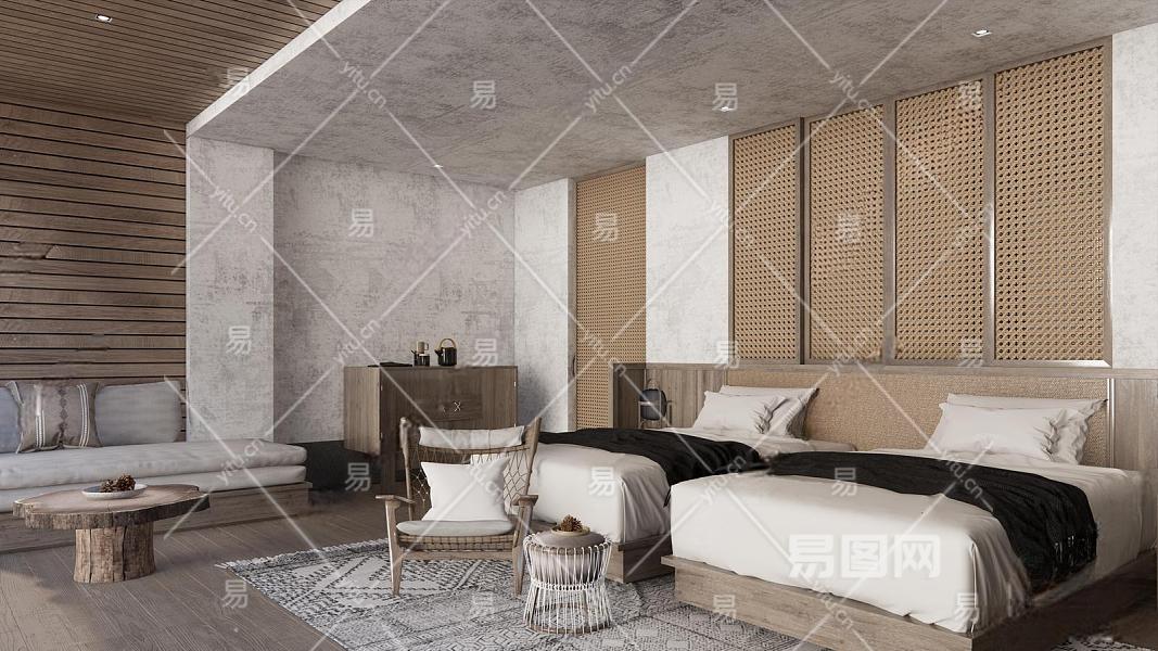 当前的位置:首页 > sketchup > sketchup模型 > 酒店空间 > 酒店客房 > 侘寂民宿客房 边几 沙发组合 休闲椅 木饰面背景墙