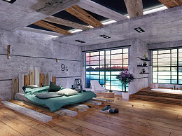 工业风民宿内部 民宿酒店 双人床