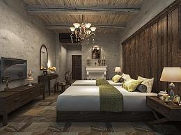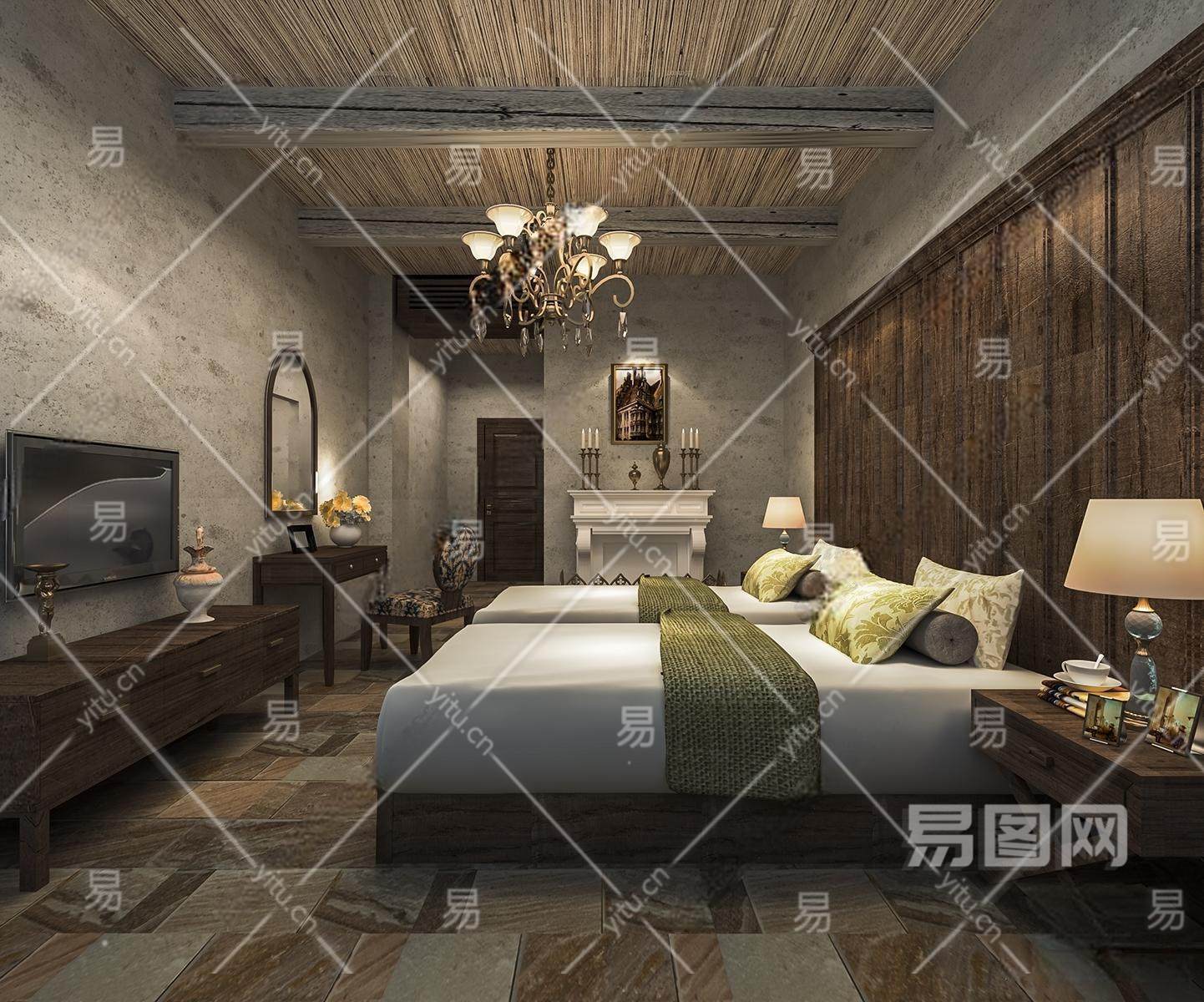 美式民宿客房 酒店客房 民宿双人间 休闲沙发 客栈