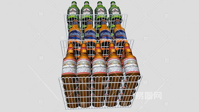 三排酒架啤酒饮品SU模型下载_sketchup草图大师SKP模型
