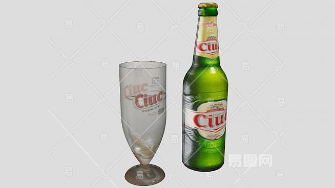 品牌啤酒酒瓶玻璃杯SU模型下载_sketchup草图大师SKP模型