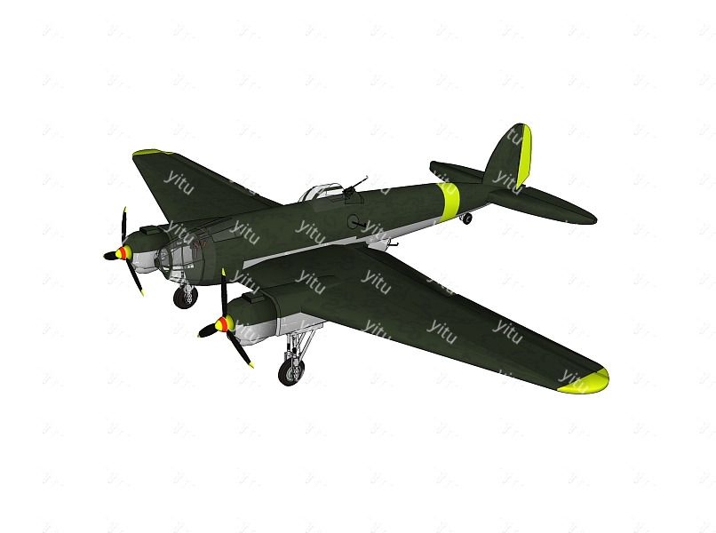 德国亨克尔He-111中型轰炸机su模型,轰炸机草图大师模型下载