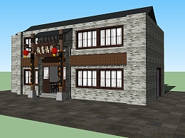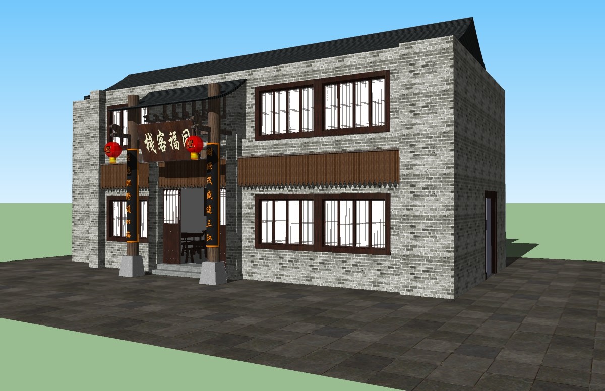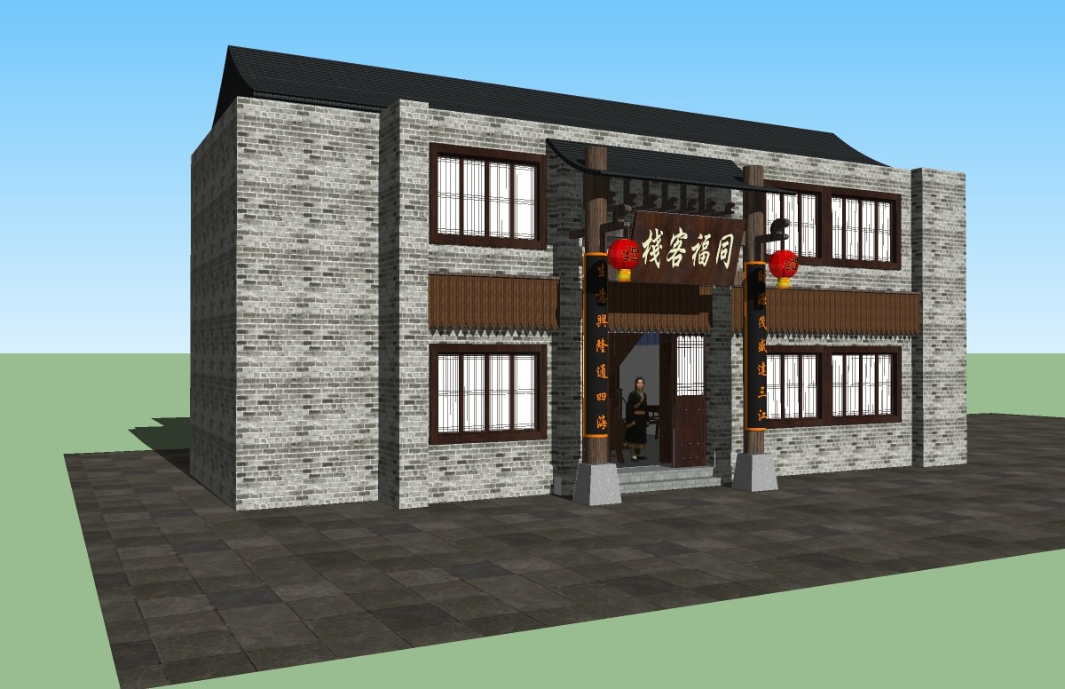 中式民俗客栈草图大师模型,客栈sketchup模型
