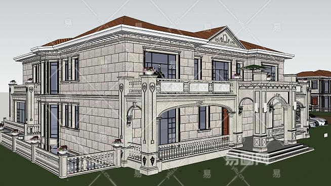 欧式外墙住宅建筑SU模型下载_sketchup草图大师SKP模型